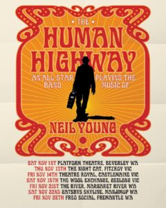 Digging deep into Neil’s incredible catalogue, The Human Highway pays tribute to all eras of his career — from his early days with Buffalo Springfield and Crosby, Stills, Nash and Young, through to his prolific solo years. This is a show that honours the heart and depth of Neil Young’s songwriting, while showcasing the virtuosity of some of Australia’s finest musicians.
